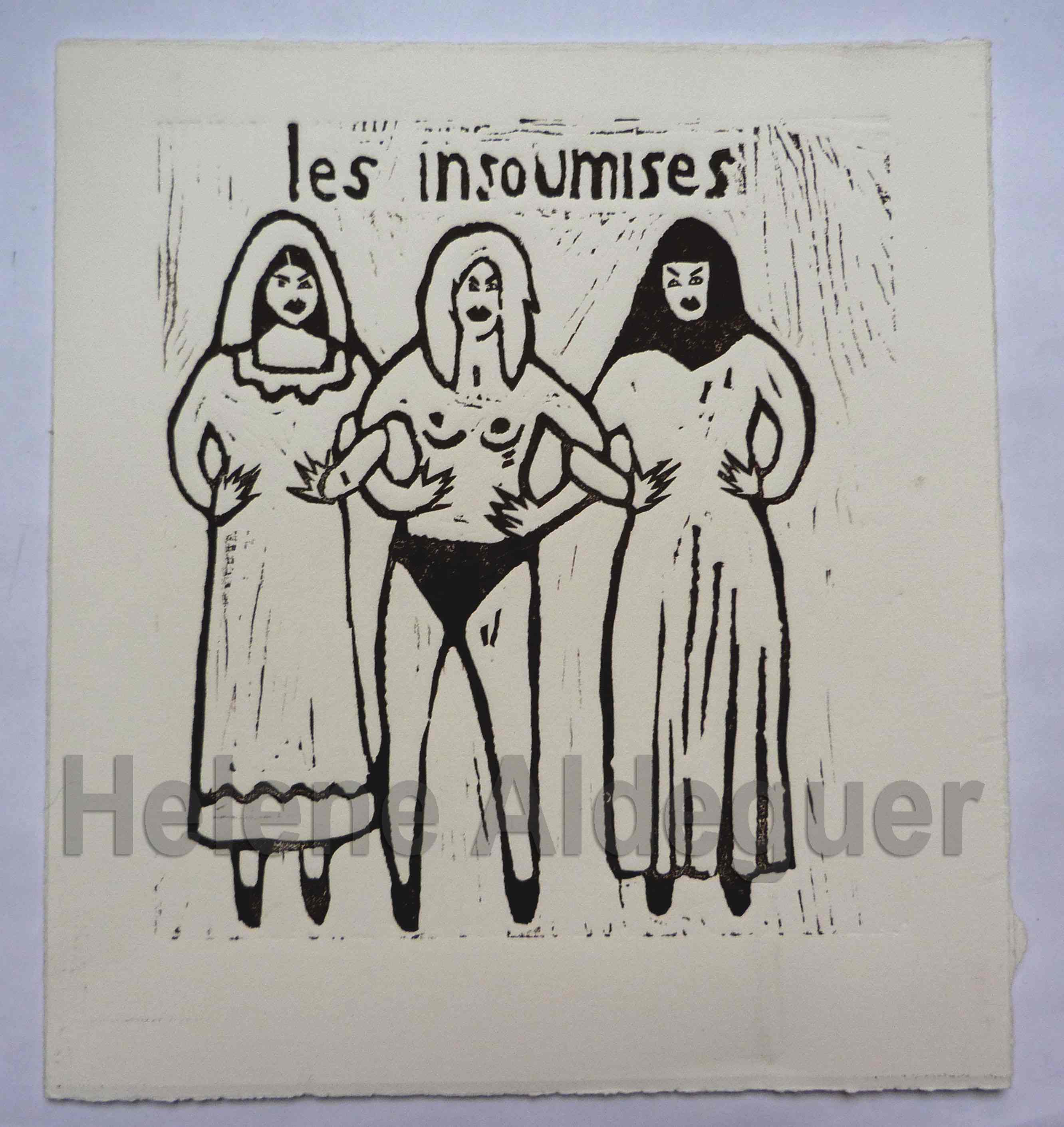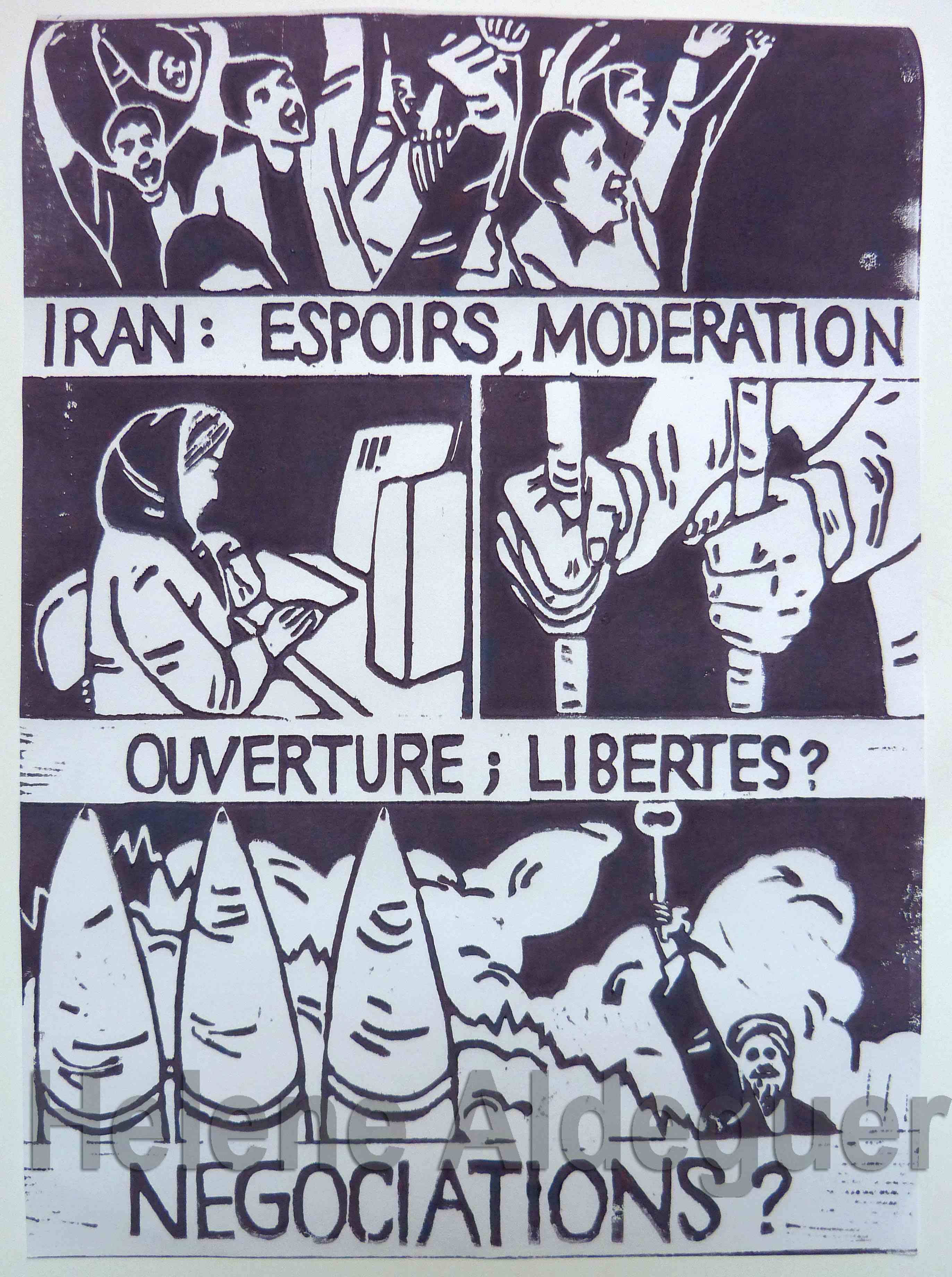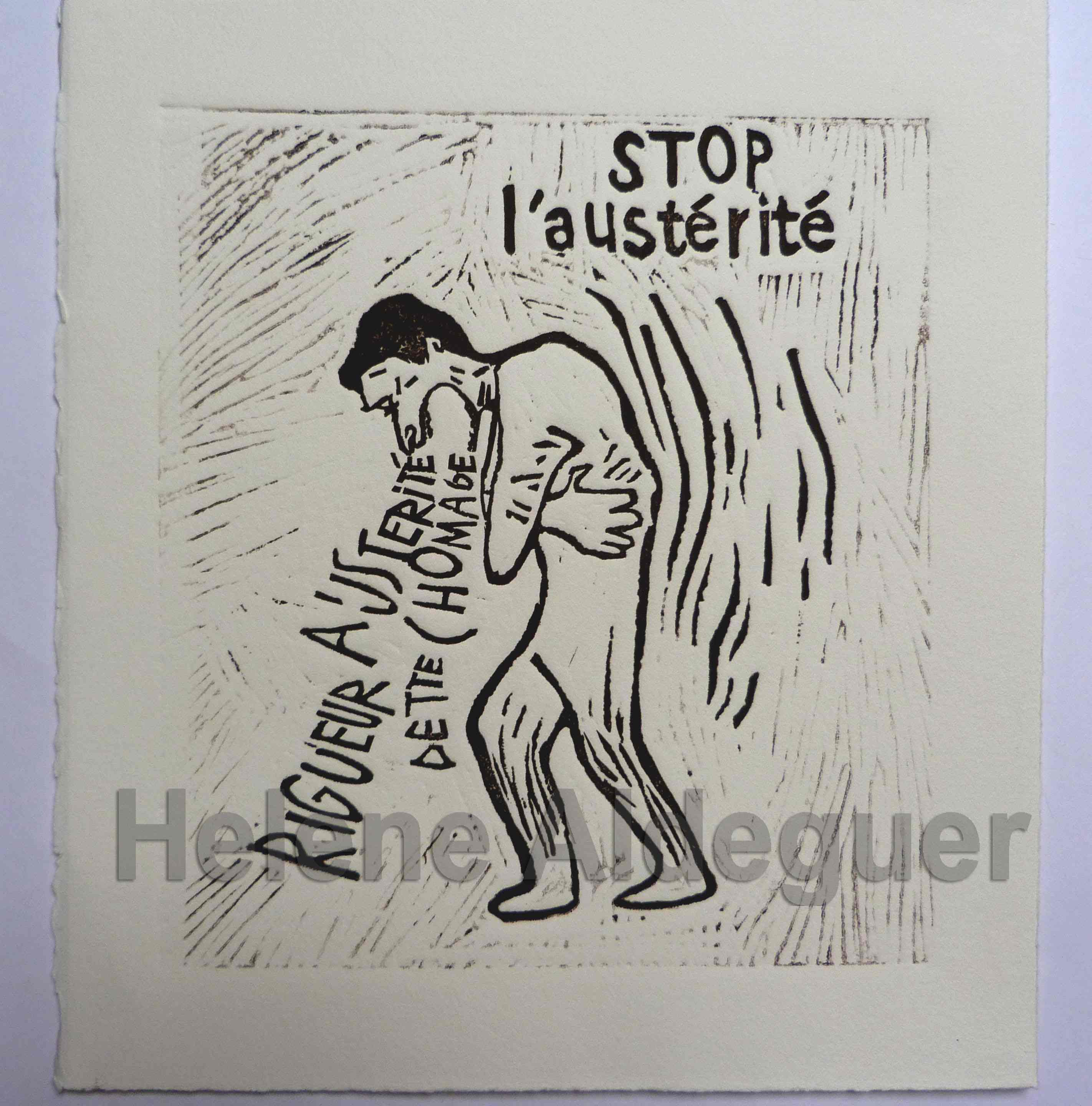 Pour continuer dans le dessin de presse, mais lui donner un trait plus dur, j’ai fait quelques linogravures (et gravures sur bois). Le dessin est simplifié, plus direct aussi.