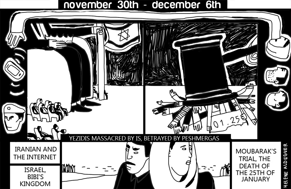 Un travail en cours pour Your middle east, un site d’informations spécialisé sur le moyen orient : des dessins qui résument l’actualité de la semaine passée et qui font le lien avec les articles écrits durant cette période. Voici pour le moment les trois dessins publiés.