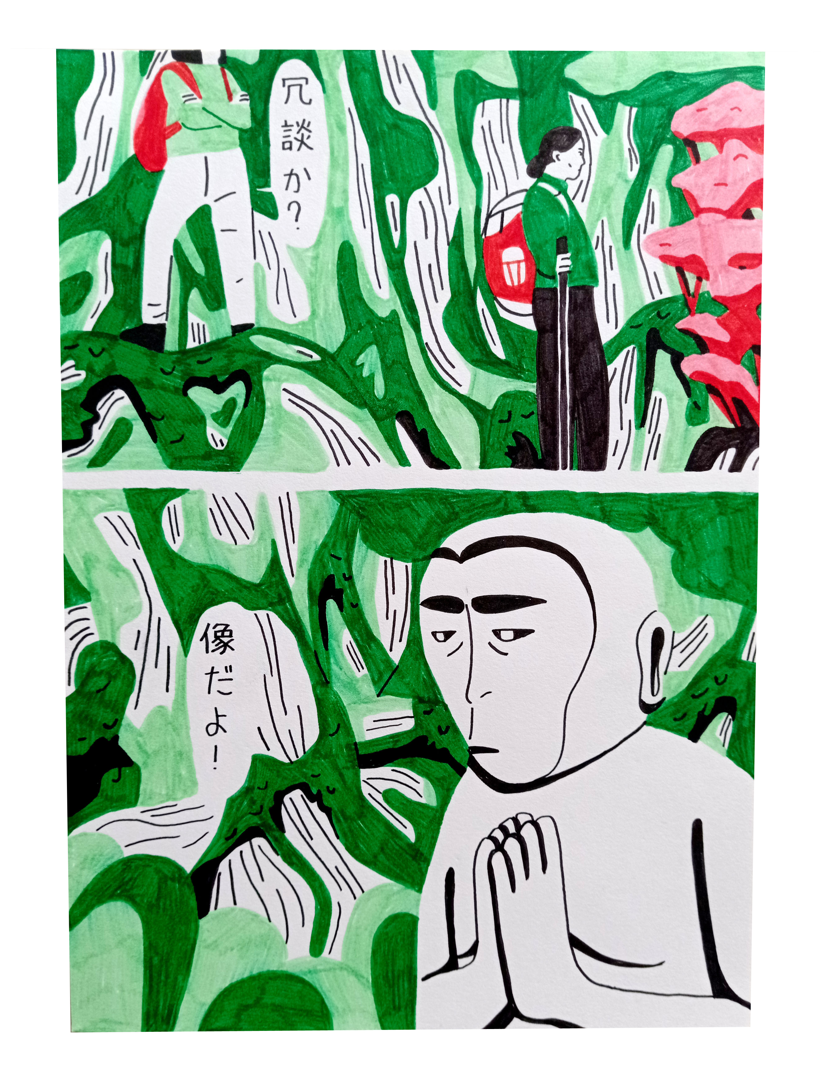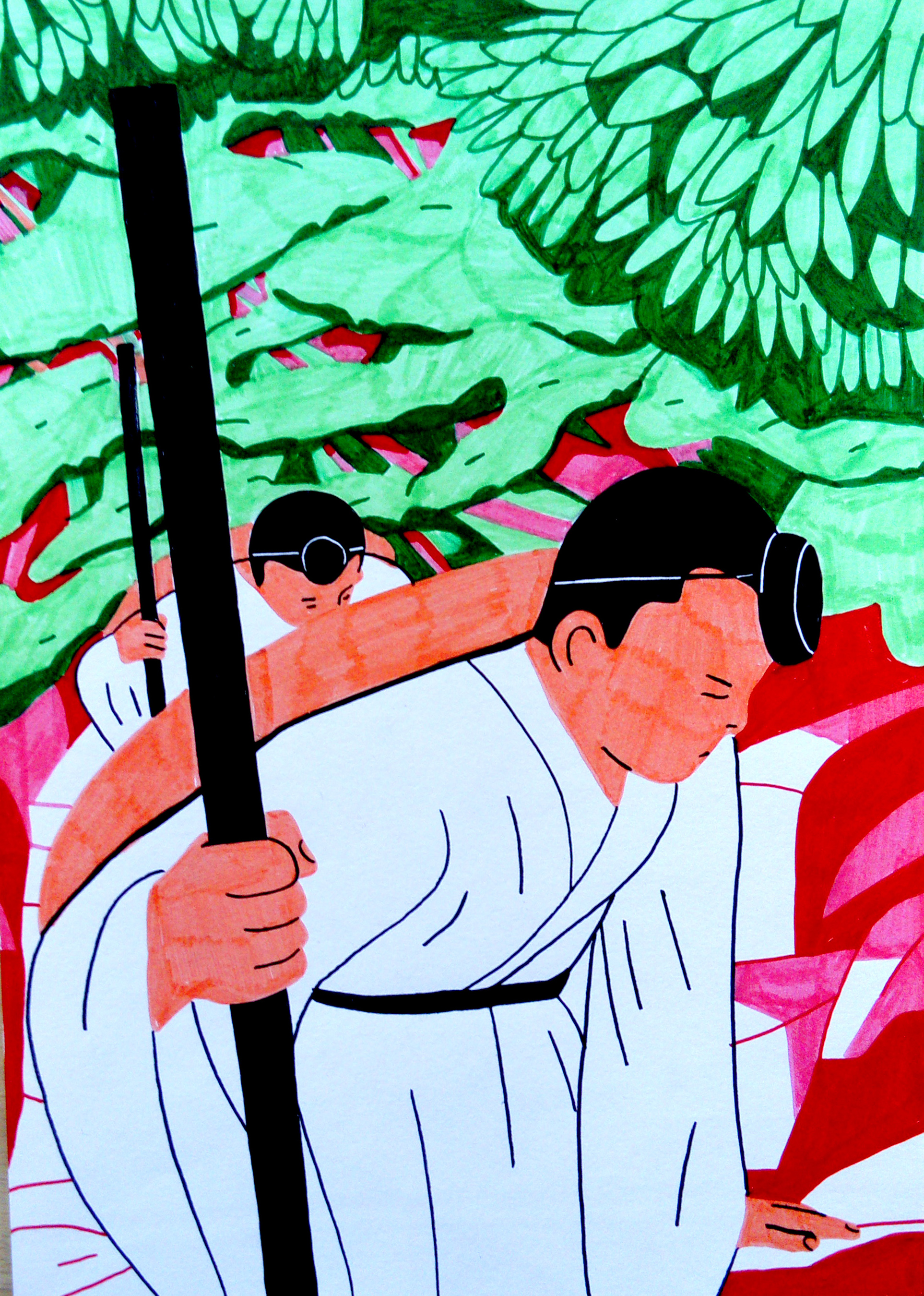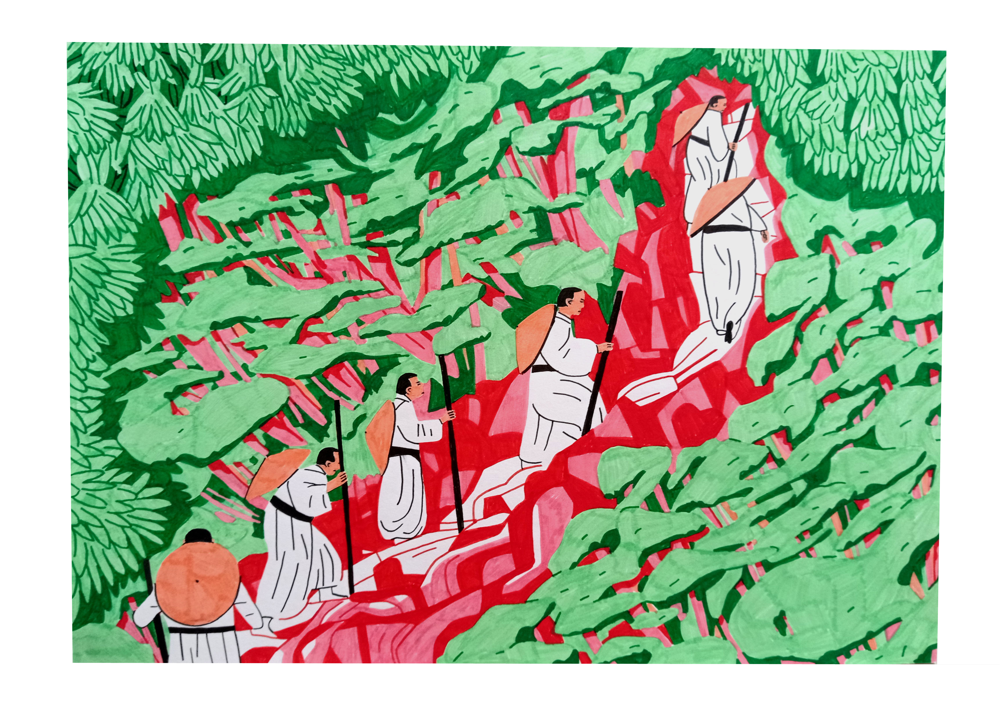 Illustrations réalisées et exposées lors d’une résidence au Japon, à Fujiyoshida. Récits de l’ascension du mont Fuji, depuis le rituel shintoïste au parcours touristique, des hommes et puis enfin, des femmes : une dialectique temporelle qui fait revivre des mythes.