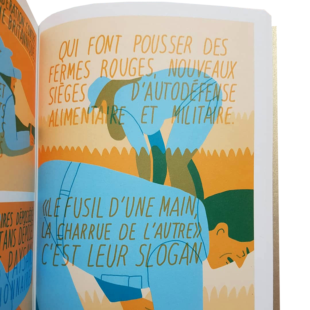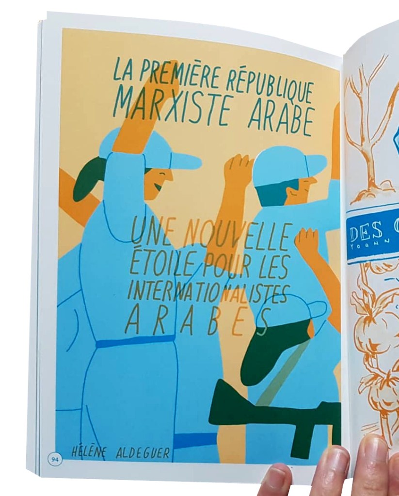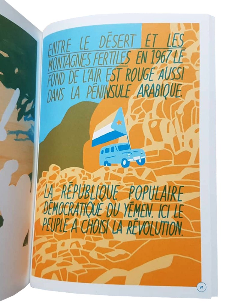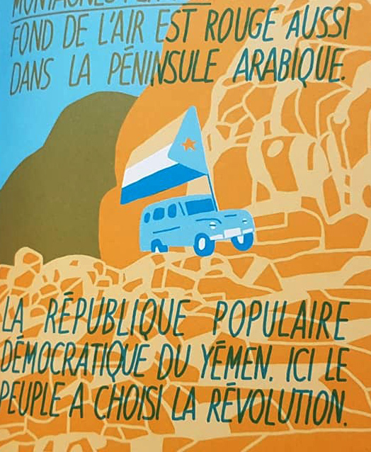 « Entre le désert et les montagnes fertiles, en 1967, le fond de l’air est rouge aussi dans la péninsule arabique. La République populaire démocratique du Yémen. Ici le peuple a choisi la révolution. Un front de libération contre l’impérialisme britannique, contre les monarchies et contre les gouvernements petits-bourgeois des pays arabes voisins. Des propriétaires dépossédés et des sultans déposés par des paysans révolutionnaires qui font pousser des fermes rouges, nouveaux sièges d’autodéfense alimentaire et militaire. « Le fusil d’une main, la charrue de l’autre », c’est leur slogan. La première république marxiste arabe, une nouvelle étoile pour les internationalistes arabes. »